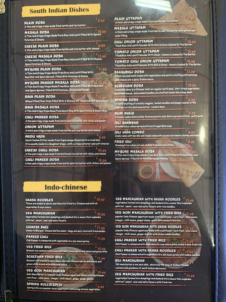 South Indian fare also shines at Shreeji, where the Onion Uttapam presents a crispy, flavorful crepe that satisfies every savory craving. The Schezwan Dosa brings a playful, enticing twist with your favorite ingredients all wrapped in a crispy shell. And don't miss out on the Medu Vada, these delightful fritters are a perfect accompaniment to any meal.